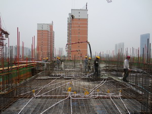 1号楼四层顶板浇筑混凝土。2号楼四层底板浇筑完毕,四层墙体钢筋绑扎准备工作。3号楼四层底板钢筋绑扎,电气管线铺设。