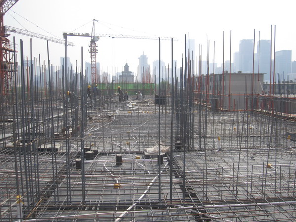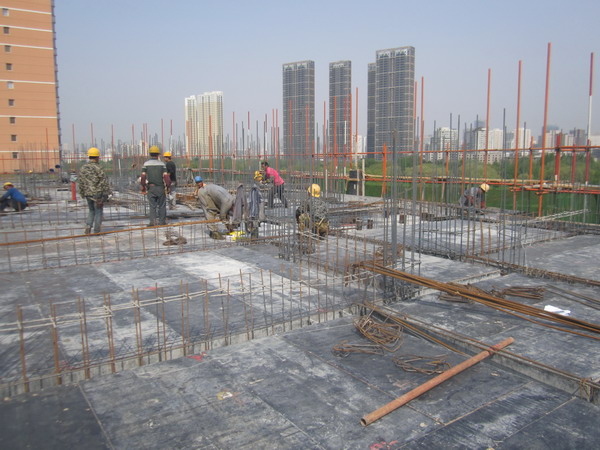 6号地块1号楼5层顶板钢筋绑扎,2号楼4层顶板浇筑混凝土,3号5层剪力墙模板安装。