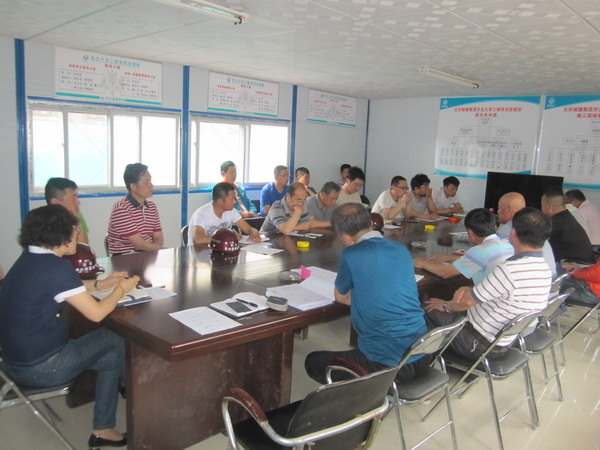 5月28日下午,家属区住宅工程一号地块1.2.5.6.7号楼召开工程例会,施工单位、监理公司、置业公司、审计部门参加了会议。会议由总监主持,施工单位项目经理对上周计划完成情况和下周计划进行了汇报。并提出了环保局规定和夜间禁止施工给工程带来的不利影响。监理公司对质量、工期、安全提出了要求。置业公司朱总对施工单位提出要求,不利因素是客观存在的,但这不能作为影响工期的理由,施工单位应在困难面前开动脑筋,将不利因素的影响降到最低,保工期、保质量、保安全。