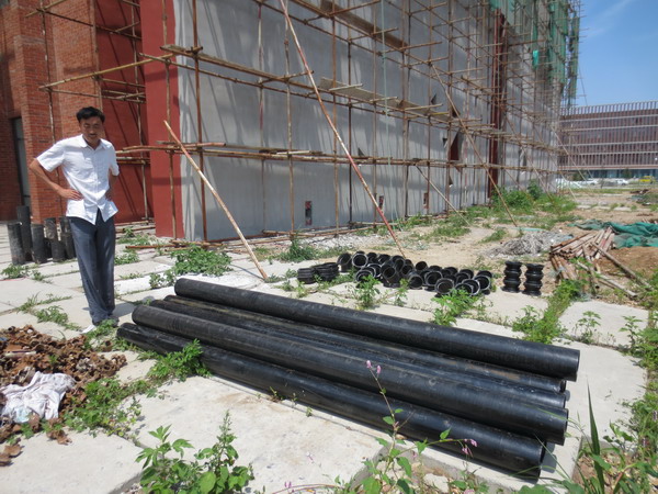 一侧山墙尚未拆除的雨水管