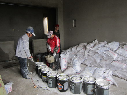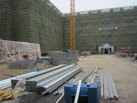 4.5号学生宿舍主体结构基本完工,目前正在施工外墙陶土砖砌筑和陶土片粘贴,外墙一、二层干挂石材施工;室内卫生间墙砖粘贴,顶层大白基层施工。
