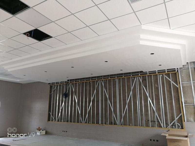 教学讲堂门斗砌墙,天棚吊顶完成。