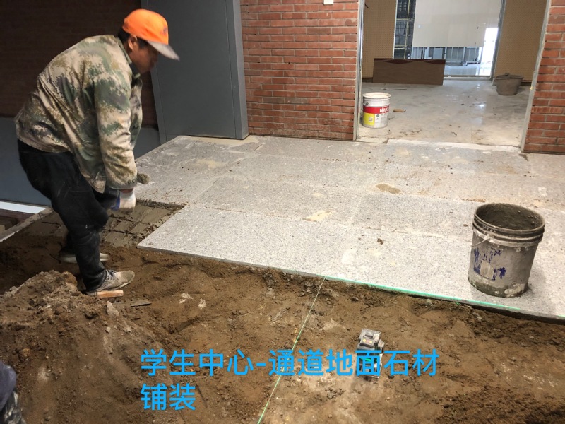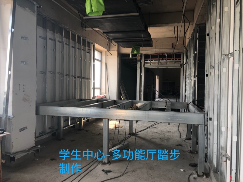 目前主体装修基本完成,多功能厅舞台处墙面木装饰板龙骨安装,木装饰板安装,舞台灯光支架安装、刷油,多功能厅地面铺装完工,多功能厅钢结构楼梯安装。
