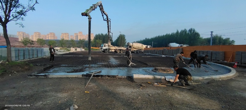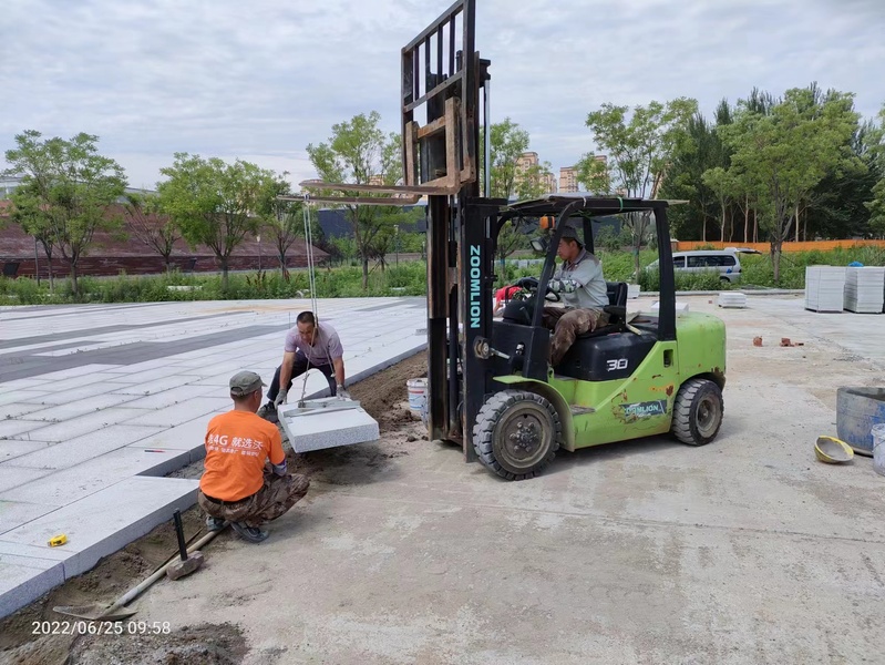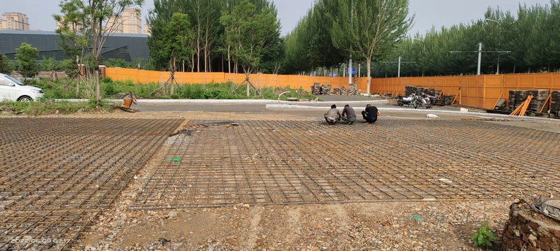 北门区域景观工程绑钢筋;浇筑混凝土;铺石材。