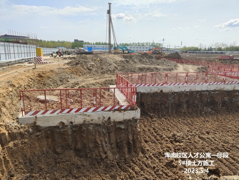 本月施工进度:生活区临建彩板房工程施工完成,1#、5#位置的基坑护壁桩施工完成,桩头凿除完成。1#楼工程桩施工完成146根,5#楼工程桩施工完成138根,3#楼及地下室部位土方外排。