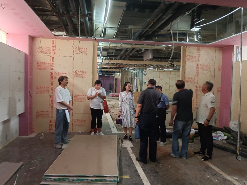 施工进度:墙面轻钢龙骨、阻燃版基层、石膏板基层及造型施工完毕,天棚轻钢龙骨、阻燃板基层、石膏板基层施工完毕。电气配管、配线拆除安装施工完毕。空调、水暖、消防管道拆除安装施工完毕。