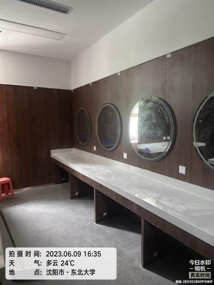 施工进度:一层房间天棚大白完成、灯具风口安装完成,一层房间地面施工完成,原地胶地面拆除新建完成,化妆间柜台、镜子安装完成,保洁清理完成,6月14日完成竣工验收。