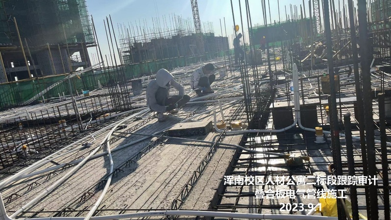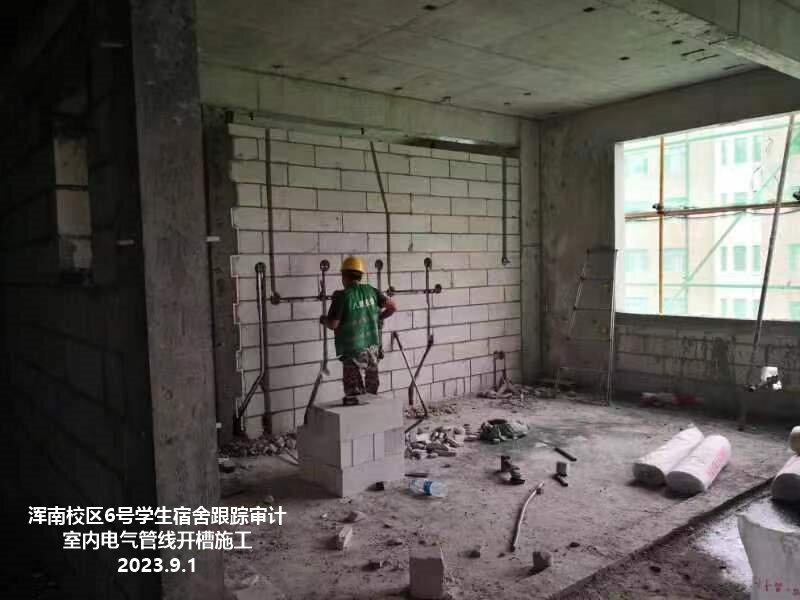 电气:A区二次开槽配管2层、3层已施工完毕,4层完成70%,B区二次开槽配管2层、3层已施工完毕,4层完成70%,2层桥架支架施工完成,宿舍暗装配电箱体施工同二次开槽配管进度相同。
