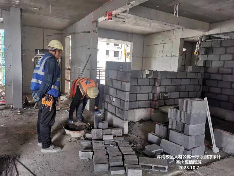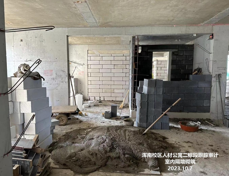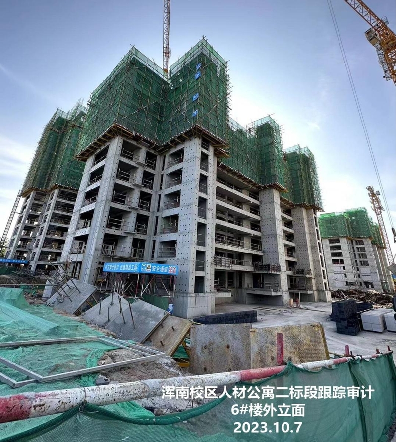 本月跟踪审计内容:本月参加监理例会4次,参加质量验收23次,参加6#楼2层砌筑样板间验收一次。本月收到东大公寓装饰图(电子版),收到浑南校区人才公寓施工(二标段)农民工工资补充协议(电子版);出具8月进度款报告,审定金额7337088元。9月进度款尚未申报。