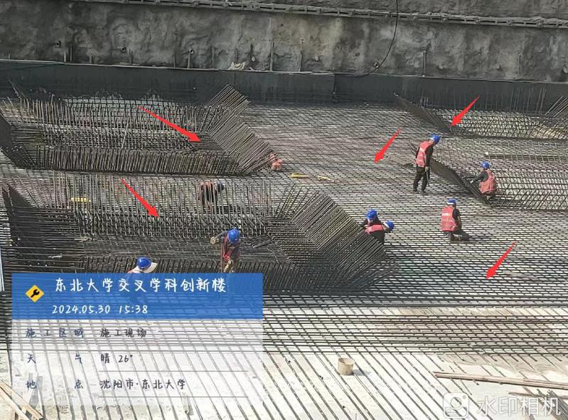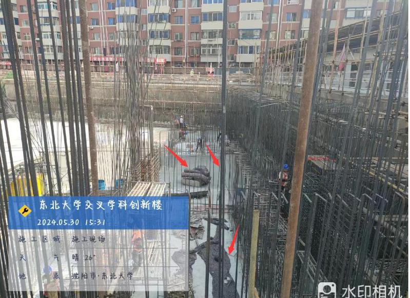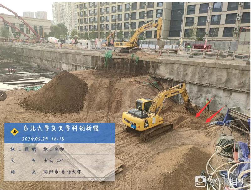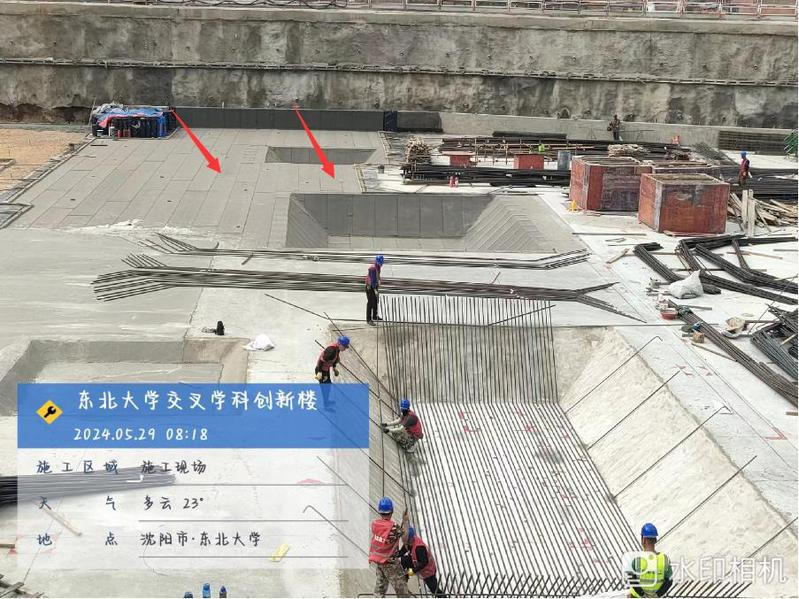 施工进度一至四段土方出土完成,五段土方出土完成70%;一至四段垫层及砖胎膜完成;一至三段防水及防水保护层完成;一段筏板浇筑完成,二段筏板钢筋绑扎完成50%;1号、2号塔吊基础完成、设备安装完成。